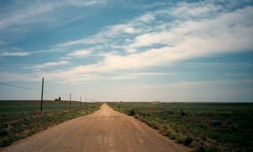Meteor Crater, AZ. The old road looking east toward the old museum observation tower.