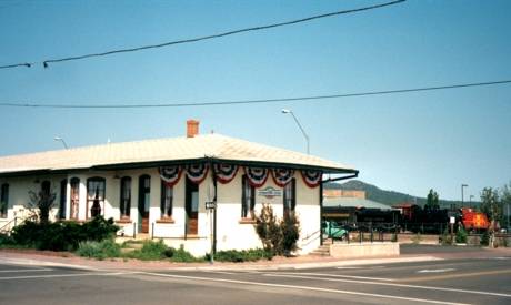 Williams, AZ. The former station now houses a visitor center. The new station is on the other side of the tracks.