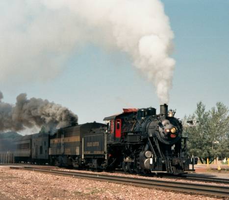Williams, AZ. The Grand Canyon Railway train heads out loaded with tourists.