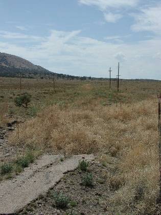 Seligman, AZ. Remnants of pavement on the earlier alignment. Chino Point is in the background.